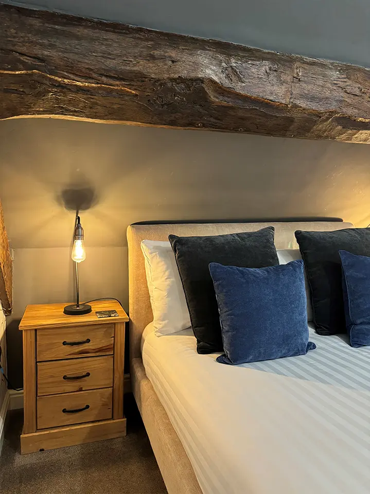 Original beams, warm textures and gentle lighting create a snug, welcoming feel, while a king-size bed and spacious walk-in shower ensure modern comfort. Elevated above the river and away from the world, it’s a restful bolthole that invites you to slow down and enjoy the moment.