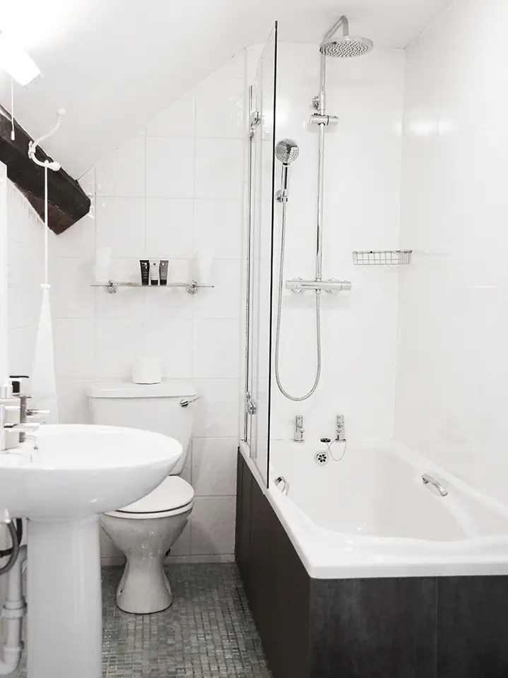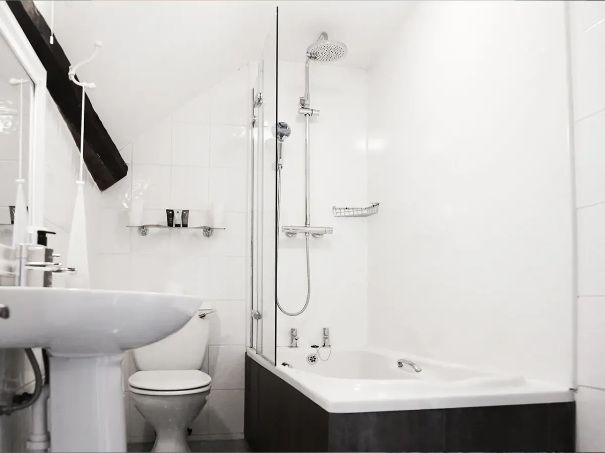 With its exposed beams and elevated outlook, Montague is full of gentle character and riverside calm. Located on the second floor, it features a king-size bed, wonderful views upstream, and a well-appointed bathroom with a bath and shower over.