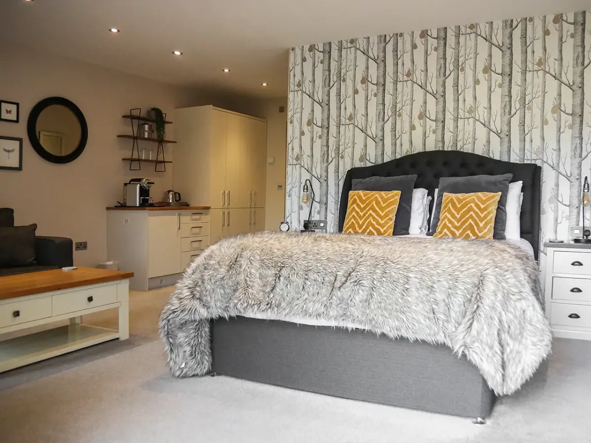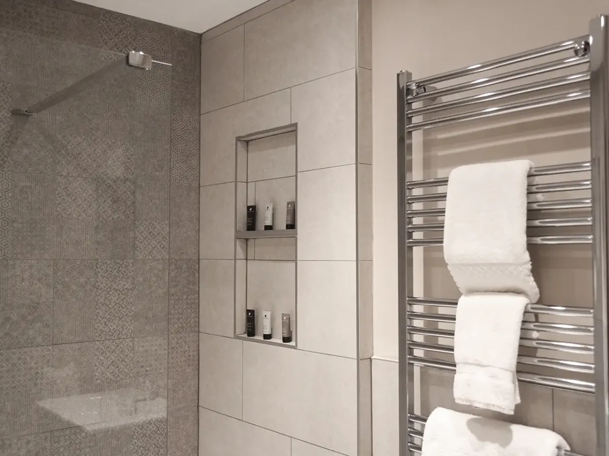 Featuring a comfortable king-size bed, a modern walk-in shower, and a private balcony with seating – ideal for enjoying a morning coffee or an evening glass of wine while the River Teme flows gently past. A restful riverside base, perfect for slowing down.
