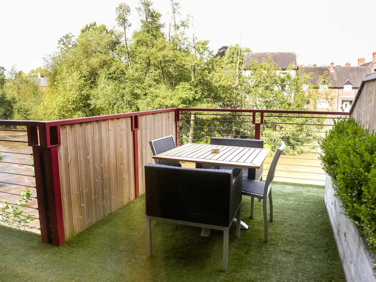 Featuring a comfortable king-size bed, a modern walk-in shower, and a private balcony with seating – ideal for enjoying a morning coffee or an evening glass of wine while the River Teme flows gently past. A restful riverside base, perfect for slowing down.